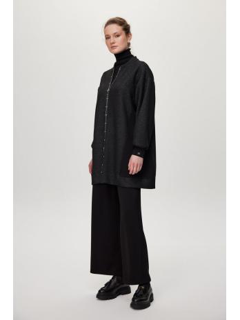 Cet ensemble double ajoute une touche élégante à l’élégance quotidienne avec sa forme confortable et ses détails en pierre. La pièce supérieure en forme de veste gagne en mouvement grâce à sa fermeture à glissière et à ses décorations en pierre, tandis que le costume, complété par un pantalon large, offre un confort tout au long de la journée.