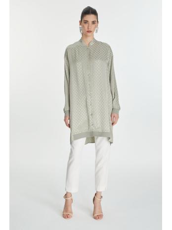 Encolure montante, Tissu jacquard, Boutons détaillés, Manches longues, Coupe décontractée