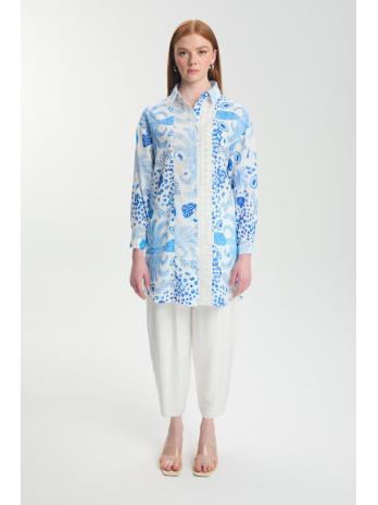 Tunique à motifs avec dentelle détaillée sur le devant T-1570