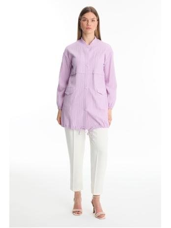 Col juge, Fermeture boutonnée sur le devant, Manches longues, Conception de poche, Ourlet réglable par cordon de serrage, Coupe confortable